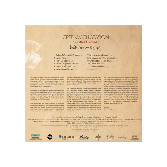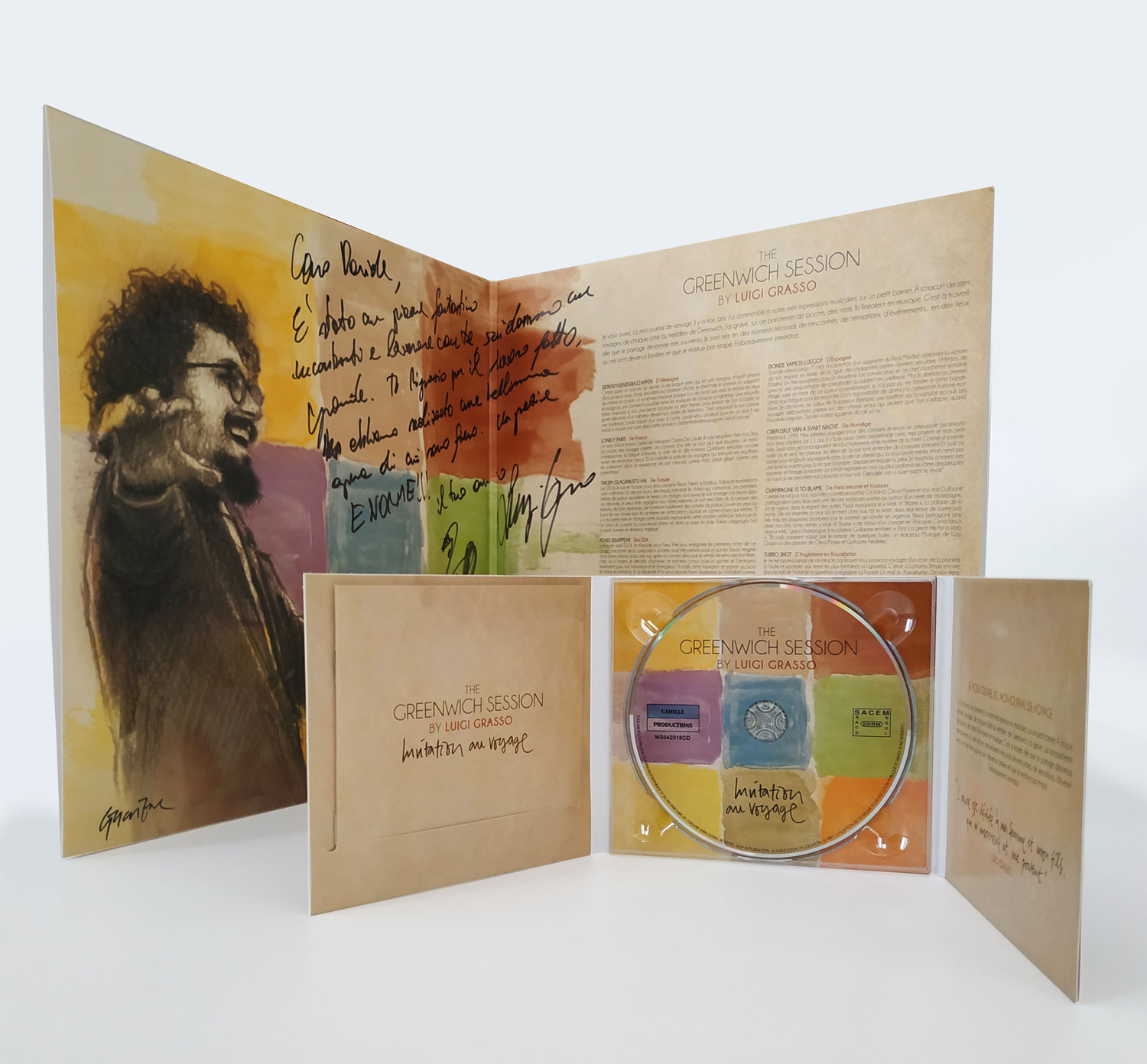 Cover and layout for the double vinyl and CD “Invitation au voyage” by saxophonist Luigi Grasso